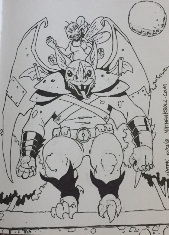 Inktober Day 15! Shadow Weaver from the 80’s She-Ra series. I really like the new design from the netflix series, can’t wait to watch it. Inktober Day 16! Horde Trooper, Hordaks evil robot army. Just as cool looking as a Foot Soldier and just as incompetent. Inktober Day 17! Mantenna, evil spy with the pop-out eyes ? This guy was super fun to draw. Inktober Day 18! Grizzlor, hairy henchman Of The Evil Horde. Inktober Day 19! Scarecrow from Batman The Animated Series, done in Funko Pop style. Inktober Day 20! Funko Pop style Doctor Who. Inktober Day 21! Man-E-Faces, heroic human… robot… monster. Inktober Day 22! Used Ghostbusters World for the first time today and felt like drawing Slimer. Fun game so far! Inktober Day 23! Reimagined Wingnut & Screwloose from TMNT. Inktober Day 24! Mutagen Man from Teenage Mutant Ninja Turtles. Love drawing creepy weird TMNT characters. Inktober Day 25! Spider-Man vs Venom! I don’t think I have drawn either of these two in years, forgot how fun it is. Inktober Day 26! Egon Spengler from Ghostbusters. Inktober Day 27! Rorschach, Nite Owl, and Silk Spector from the Watchmen. Still one of my top 3 favorite comic book movies. Inktober Day 28! Man-At-Arms meets He-Man. Always loved this scene in the mini-comic, but to me, it looked like Man-At-Arms was wearing goggles so that is the way I drew it.